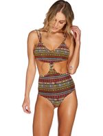 Body com recortes vazados, possui viés de tiras nas costas. Referências: 13494 Tecido: Super leve com elastano e jersey com elastano trilobal. Estampa: Sunset.