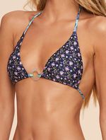 Top cortininha estampado. O modelo possui bojo removível e entremeio de argola.